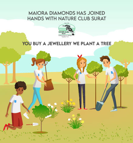 Maiora Diamonds has collaborated with Surat Nature Club to provide an opportunity to our customer to plant a tree with every purchase made. The Plant-A-Tree project allows our customers to have a tree planted at one of the protected lake or forest.